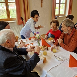 Und - man spürt wohltuend die Gemeinschaft - oft schon beim gemeinsamen Hinwandern, dann beim Feiern in der Kirche und schließlich beim Frühstück im Pfarrheim.