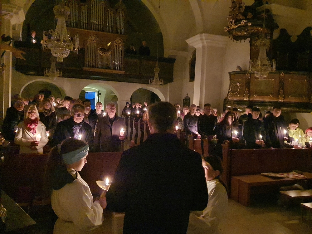 Die Vorabendmesse mit Vikar Norbert Glaser gestaltete musikalisch der Gesangsverein Unterpremstätten-Zettling, unter der Leitung von Farbod Majdianfar. Es erklangen die „Krumpendorfer Adventmesse“ und stimmungsvolle Adventlieder, begleitet von Kathrin Müllerferli an der Orgel.