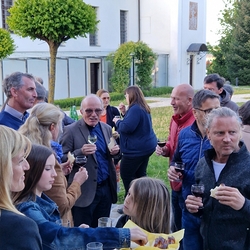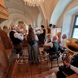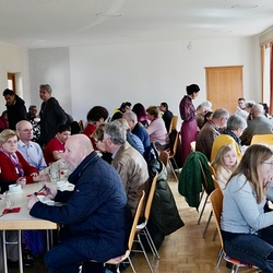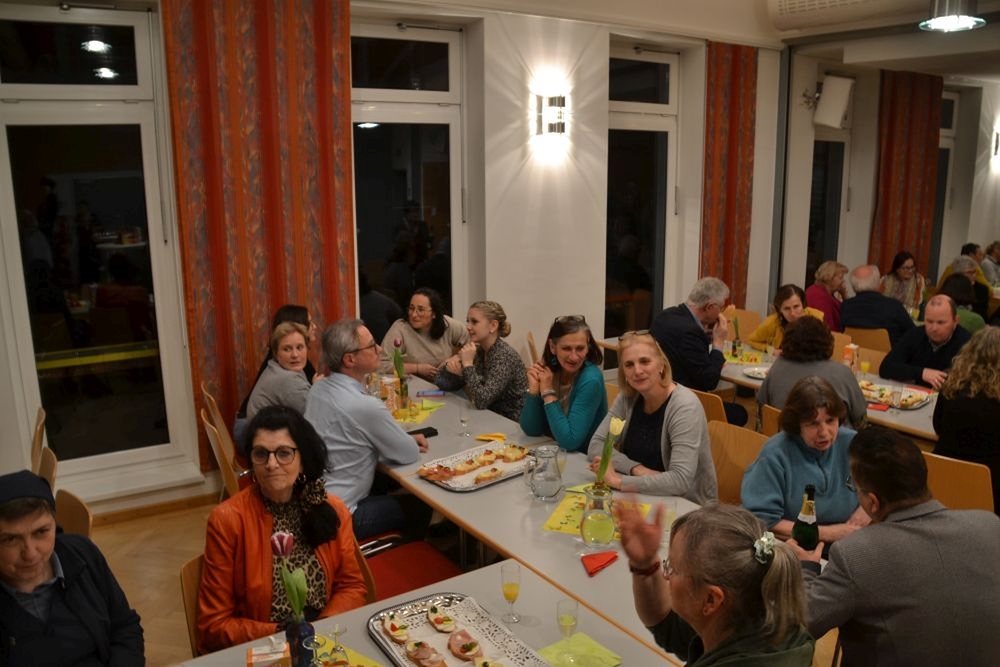 Im Anschluss waren die ehrenamtlichen Mitarbeiterinnen und Mitarbeiter beider Pfarren zum gemütlichen Beisammensein ins Kulturheim Wundschuh geladen. Dort konnte man - bei fröhlicher Musik der Lichtmessgeiger - köstliche Brötchen, Sekt und Krapfen genießen und den Rosenmontag mit angeregten Gesprächen ausklingen lassen.