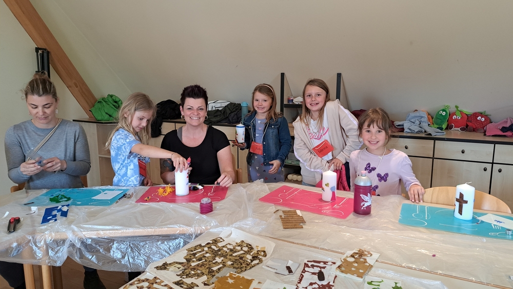 • das eigene Feierheft gestalten, eine Brosche aus Fimo und den Kirchenschmuck basteln