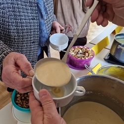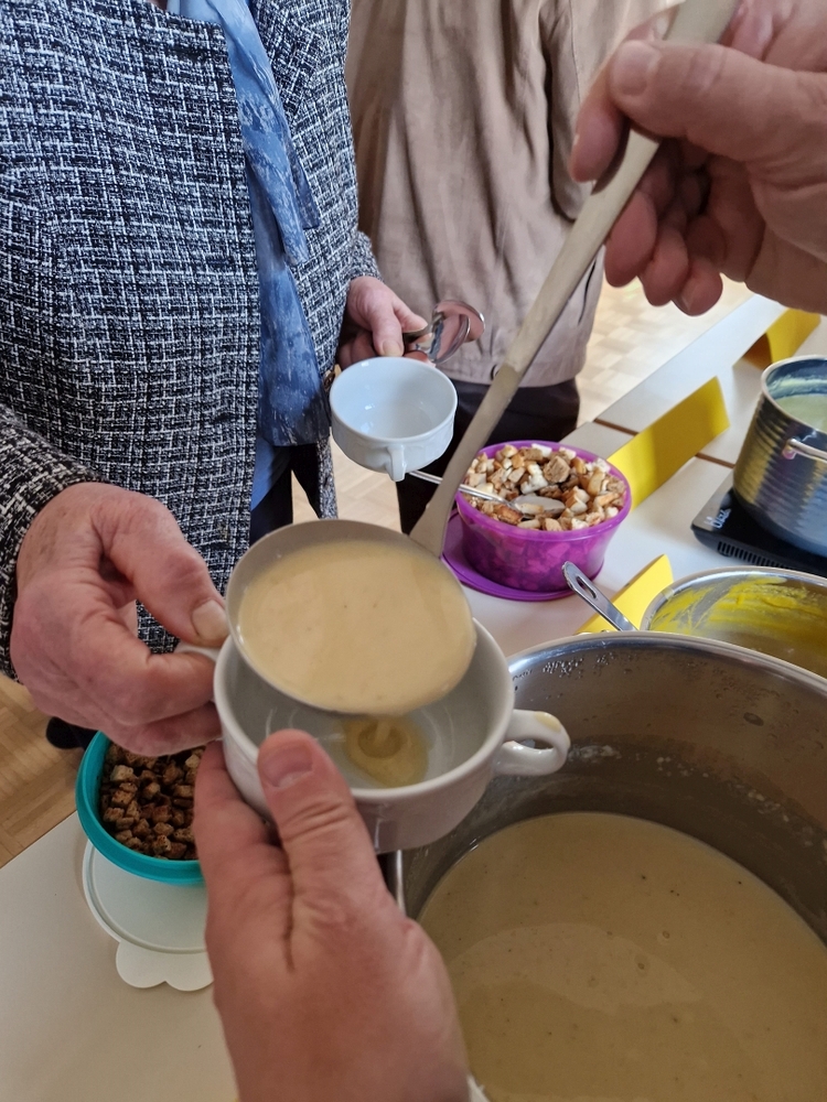 Der Pfarrgemeinderat und weitere Mitarbeiter*innen der Pfarre boten selbst gekochte Suppen an, die auch sehr gut und gerne angenommen wurden.