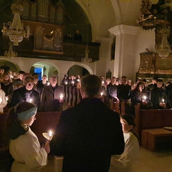 In dieser besonderen Messfeier bei Kerzenlicht besinnen wir uns in der fast dunklen Kirche auf das Kommen des Lichts, das alle Dunkelheit durchdringen wird!
