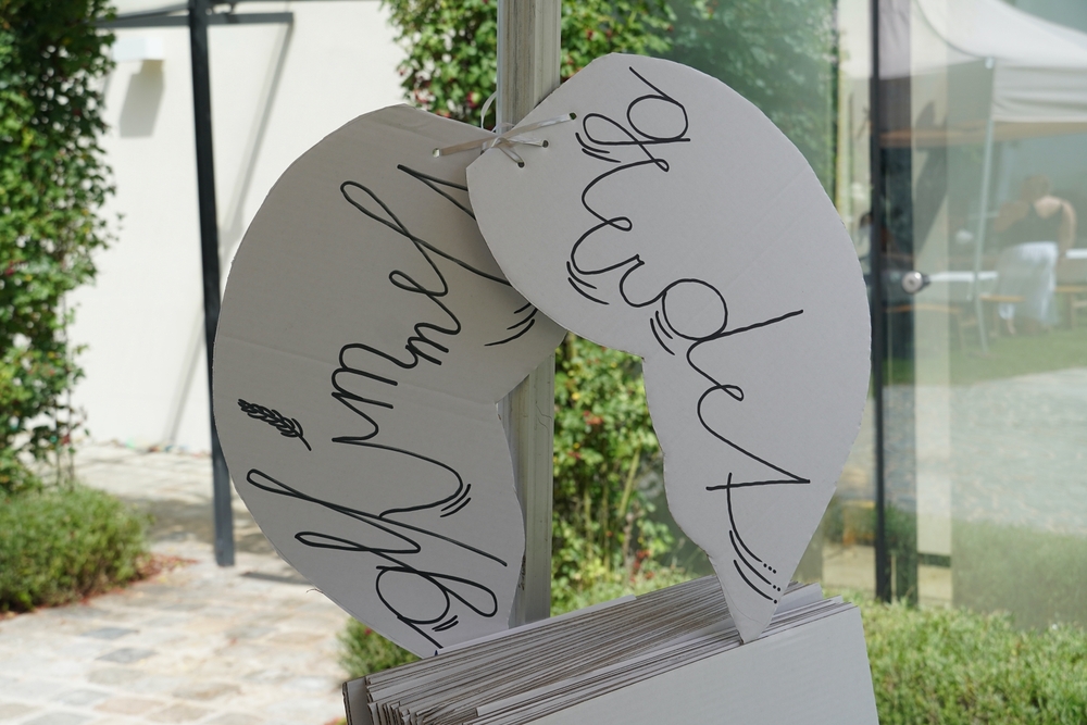 Wofür bin ich besonders dankbar? In der Zeichenhandlung waren alle Gottesdienstbesucher*innen eingeladen, persönliche „Dankesworte“ aufzuschreiben und in die Erntedankkrone zu legen.
