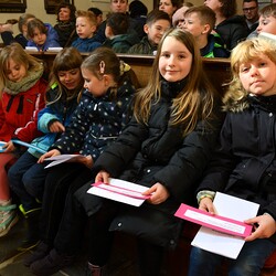 "Mit Jesus gemeinsam auf dem Weg" sind 15 Kinder der Volksschule Tobelbad, die sich mit ihrer Religionslehrerin Katrin Oswald auf die Erstkommunion vorbereiten. Mit dem Kyrie und dem fürbittenden Gebet bitten sie Eltern, Freunde und die Pfarrgemeinde sie auf diesem Weg zu begleiten. Vikar Norbert Glaser erinnert daran, dass sie schon seit der Taufe Kinder Gottes sind.